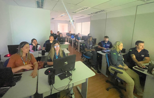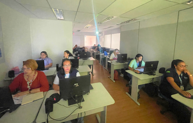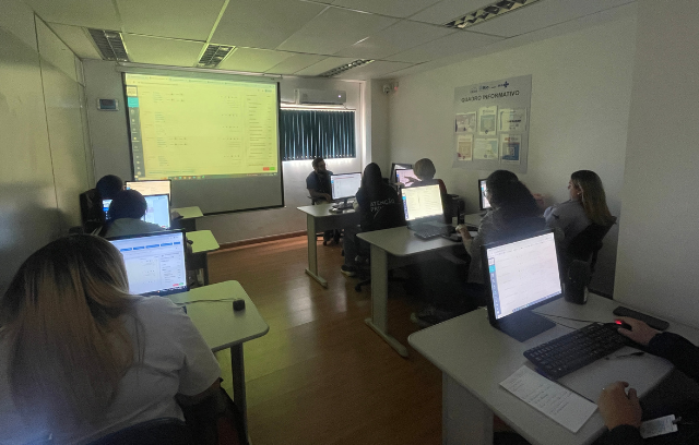 A atividade aconteceu no laboratório de informática da Estação OTICS-Rio Padre Miguel e teve como objetivo orientar sobre a utilização correta do novo sistema, abordando temas como registro facial de ponto, lançamento de justificativas, controle de banco de horas, emissão e conferência de relatórios.