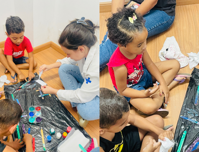 O momento contou com a presença das profissionais: Jéssica Cura (Assistente Social), Ana Caroline (Psicóloga), Tathiane Abreu (Fonoaudióloga), Flavia Seda (Nutricionista) e Julia Fonseca (Professora de Educação Física). Juntas, elas conduziram ações que promoveram bem-estar, comunicação e interação entre as crianças.