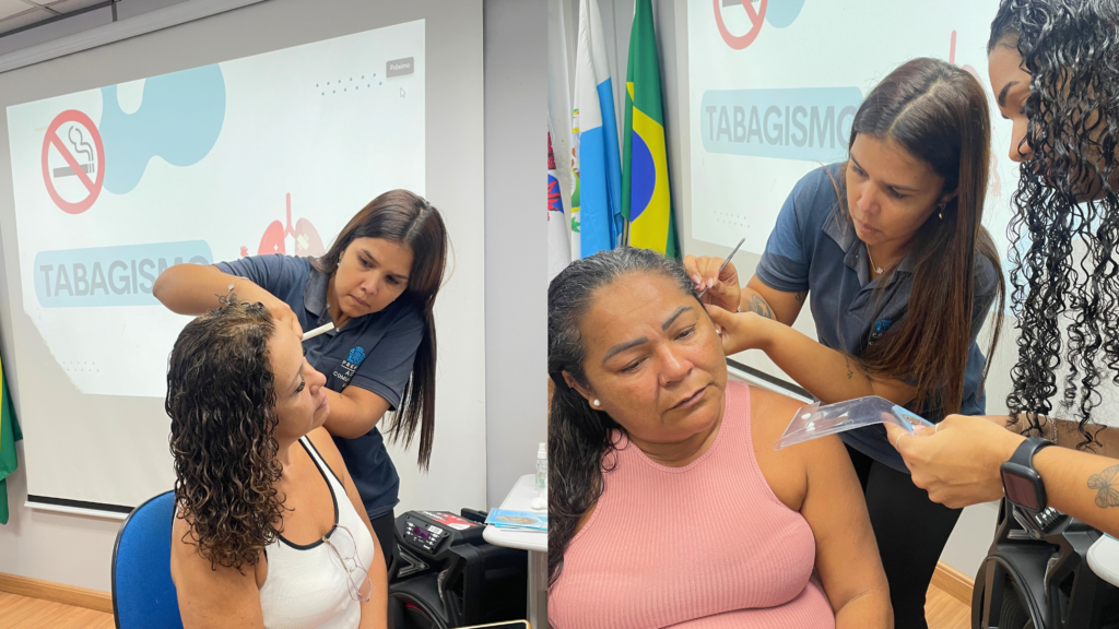 Além das orientações e da escuta qualificada, os participantes também receberam auriculoterapia, prática integrativa que auxilia no controle da ansiedade, do estresse e dos sintomas relacionados à abstinência do cigarro, contribuindo para o fortalecimento do tratamento.