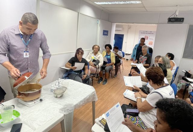 A atividade do dia foi a “Oficina de Óleo Canforado”, onde os participantes aprenderam a preparar um óleo terapêutico à base de cânfora, menta e alecrim, indicado para aliviar dores musculares e articulares. A condução da oficina ficou por conta de Misael Medeiro, biólogo da Coordenação de Área Programática 5.1 (CAP 5.1), que compartilhou informações sobre os benefícios e modos de uso do óleo.