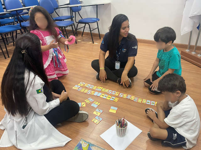 Na manhã do dia 15 de julho de 2025, foi realizado no auditório da estação OTICS-Rio Padre Miguel o grupo InterAção realizado pela Clínica da Família Olímpia Esteves (CFOE). O trabalho deste grupo é desempenhar um papel fundamental no desenvolvimento de crianças com necessidades específicas nas áreas de fala, linguagem, socialização, atividades de concentração e coordenação motora. Por meio de atividades cuidadosamente planejadas e realizadas por profissionais da saúde, as crianças tiveram a oportunidade de melhorar essas habilidades essenciais para seu crescimento e bem-estar. Esta ação contou com a participação dos profissionais da equipe eMulti: Tathiane Abreu — Fonoaudióloga e Julia Fonseca — Profissional de Educação Física.