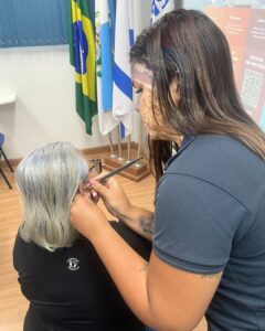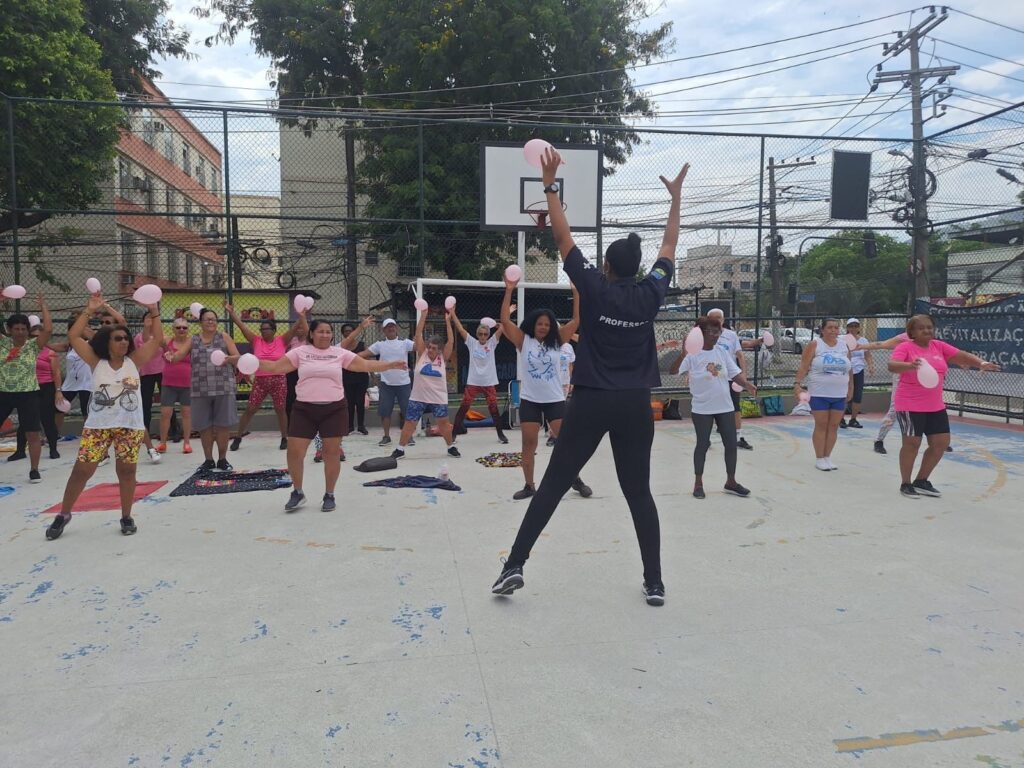A atividade foi conduzida pela fisioterapeuta Renata e pela professora Erica, incentivando o cuidado com a saúdee conscientização sobre a importância da prevenção ao câncer de mama, também orientou os participantes em exercícios de alongamento, movimentos leves e práticas voltadas à promoção da saúde e da qualidade de vida.