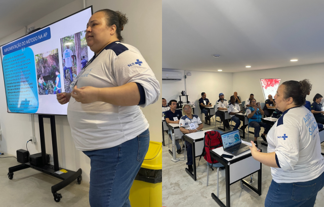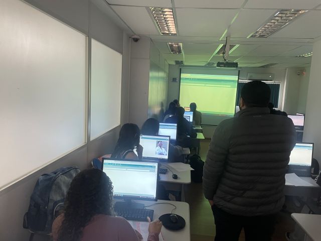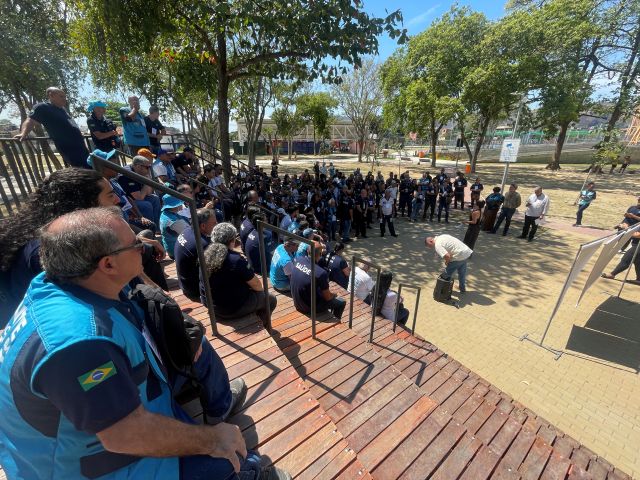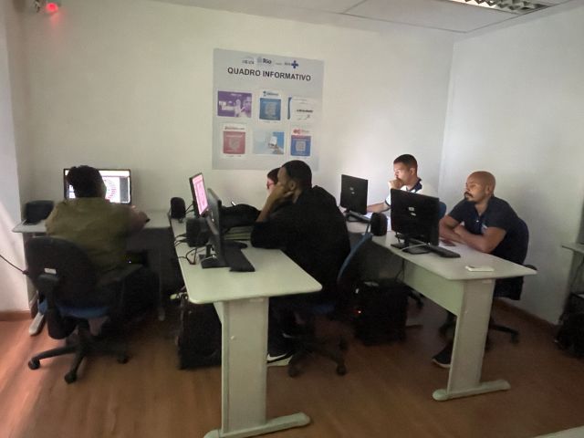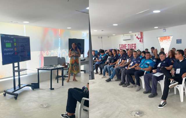 A atividade aconteceu no laboratório de informática da Estação OTICS-Rio Padre Miguel e teve como objetivo orientar sobre a utilização correta do novo sistema, abordando temas como registro facial de ponto, lançamento de justificativas, controle de banco de horas, emissão e conferência de relatórios.