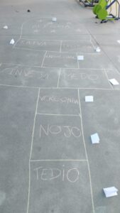 A atividade foi conduzida pela profissional da equipe  eMultiAna Caroline (psicóloga), Para tornar o encontro mais leve e participativo, as adolescentes foram convidados a participar da dinâmica “Amarelinha das Emoções”, uma proposta lúdica que permitiu explorar sentimentos e reflexões de maneira acessível e divertida.